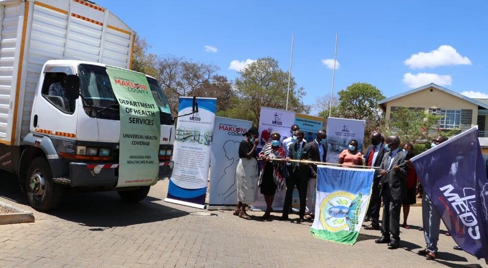 Makueni County Governor Prof Kivutha Kibwana has flagged off seven trucks carrying medical supplies worth over Sh70 million to be distributed to various public health facilities across the county.